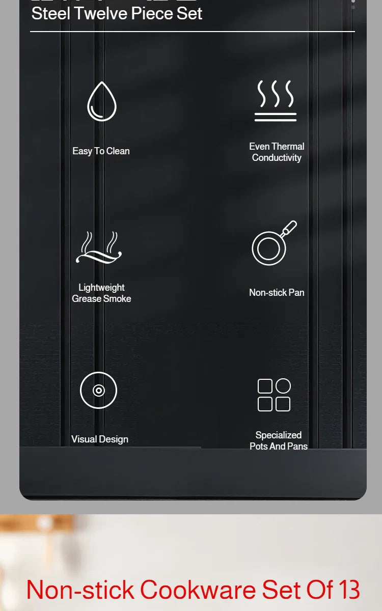 13 Piece Cookware Set Milk Pot Soup Pot Flat Bottomed Small Frying Pan with Lid And Shovel Kitchenware Set for Cooking pots Set