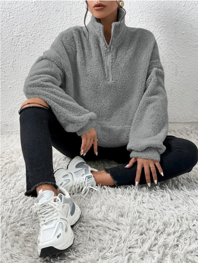 2024 Autumn Winter Fashion Women Velvet hoodie Solid Color Thickened Plush Pullover Big pocket Warm Long Sleeve Lady Sweatshirt