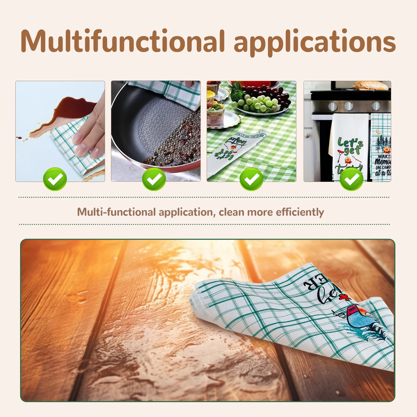 Pattern Design: These camping dish towels are decorated with various elements, like tent and car patterns, which can easily match most styles of kitchen decorations