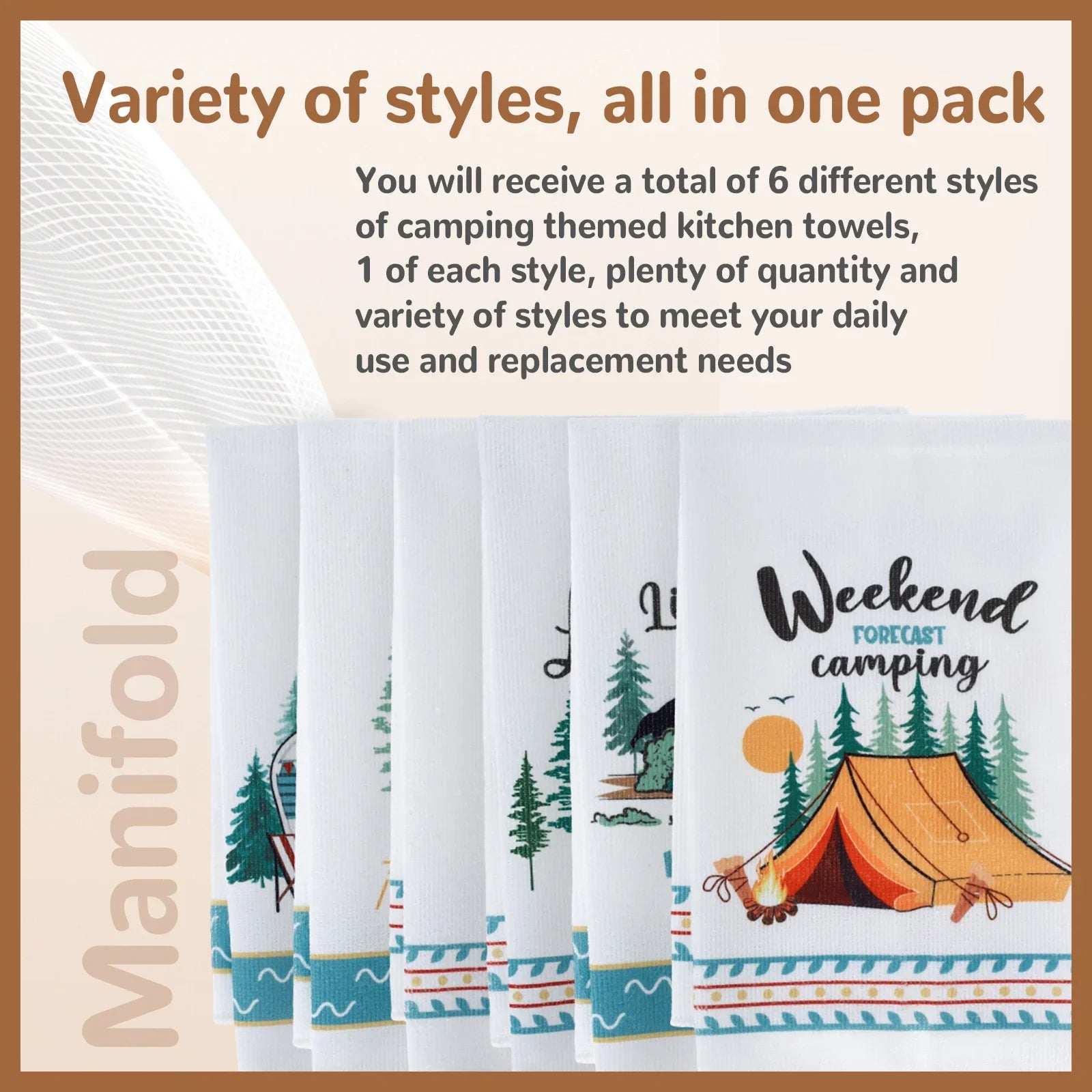 What You Get: You will receive 4pcs or 6pcs of different styles of camping-themed kitchen towels, 1pc of each style, sufficient quantity, and various styles to meet your daily use and replacement needs