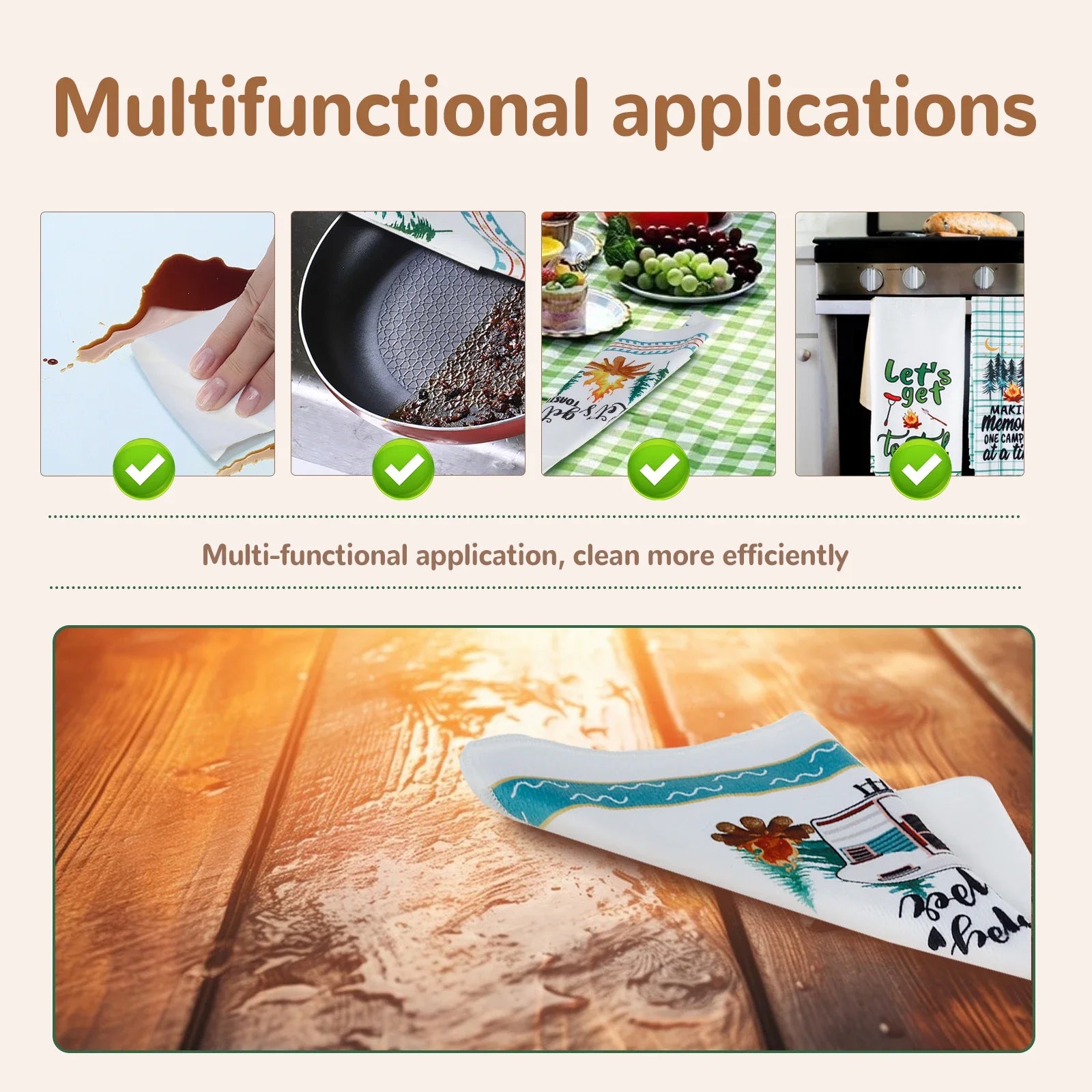 Wide Range of Applications: You can use these camper dish towels to wipe hands, plates, or cutlery, and quickly clean countertops, tables, or windows. It can be hung on oven handles, countertops, or towel racks, ideal for kitchens, bathrooms, or home decorations
