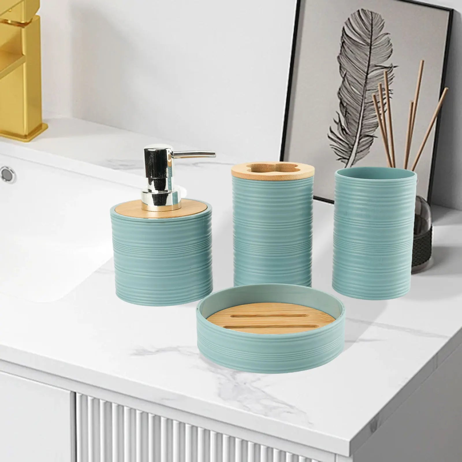 4 Pieces Bathroom Accessories Decorative Soap Dispenser Mouthwash Cup Bath Accessory Complete Set for Countertop Bathroom Vanity