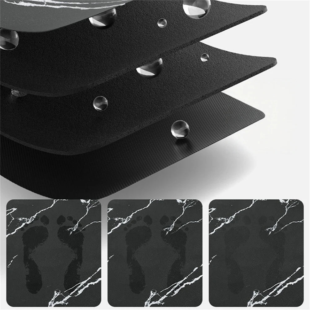 *Quick Dry Technology: This diatomite stone PU bath mat is engineered to absorb water instantly, any moisture evaporates within minutes for a consistently dry and comfortable experience after showering. Â