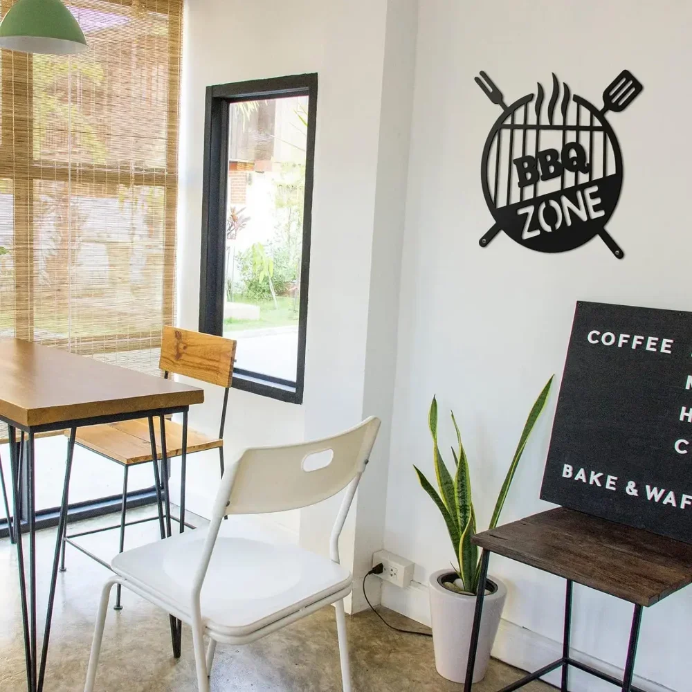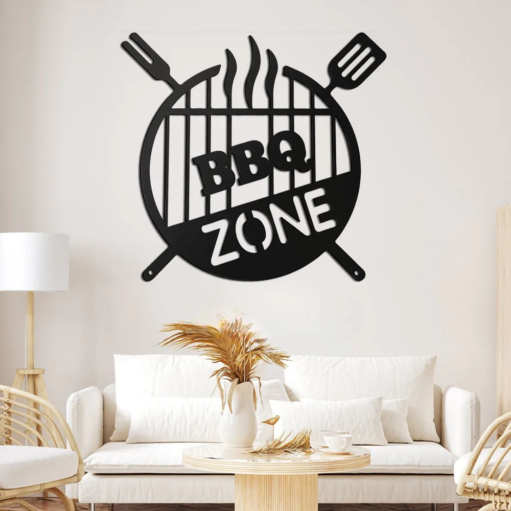 Novel Appearance: the BBQ monogram wall decor is designed in round shape, with shape of a knife and fork, and the words that read [BBQ ZONE], can be easily matched well with other decorations .