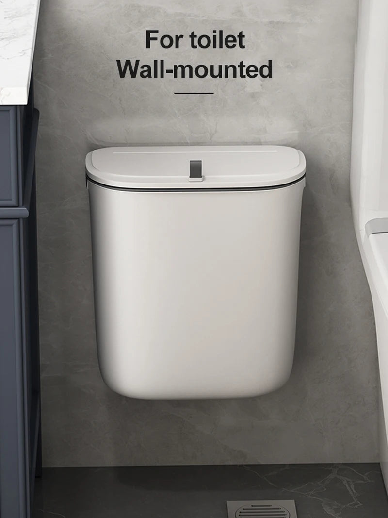 Bathroom Trash Can Wall Mounted Hanging Trash Bin With Lid Waterproof Narrow Seam Rubbish Bin Toilet Waste Garbage Bin 7/9L