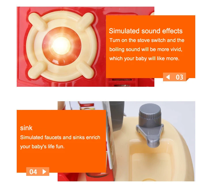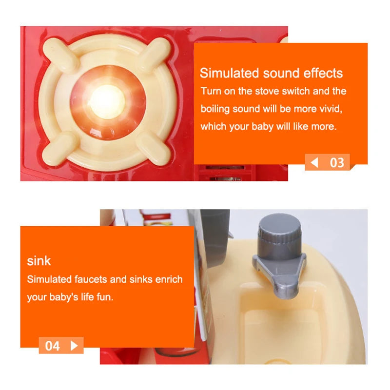 Realistic Cooking Experience: When the stove is turned on, it produces realistic cooking sounds and lights up.providing children with a more immersive cooking experience.