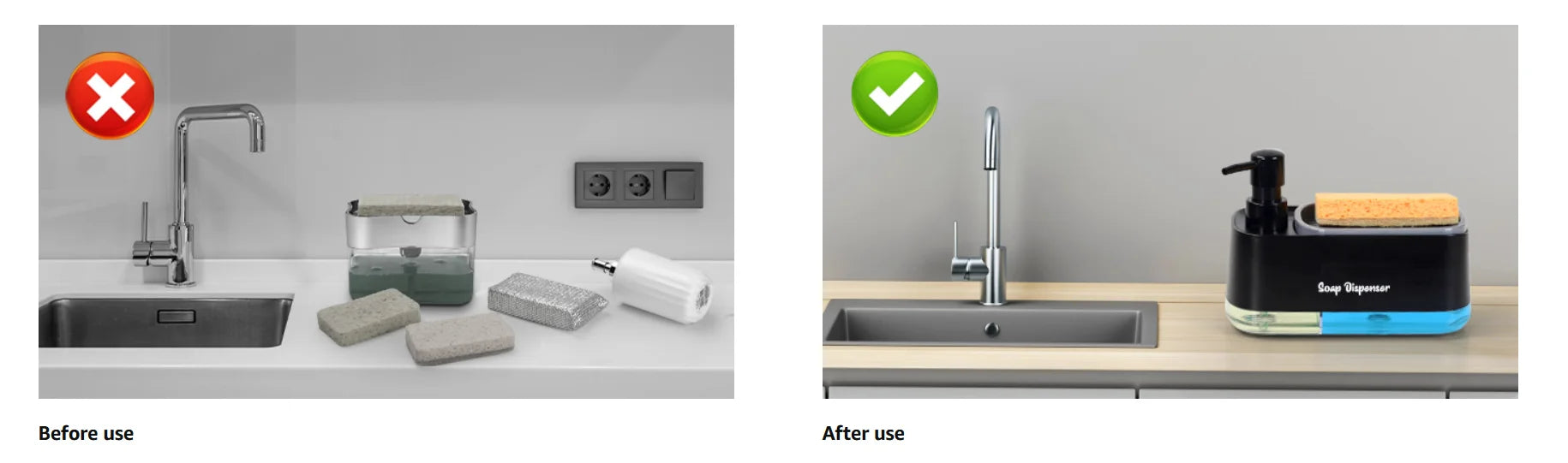 2-in-1 Functionality:This soap dispenser doubles as a sponge holder, streamlining your kitchen sink setup.