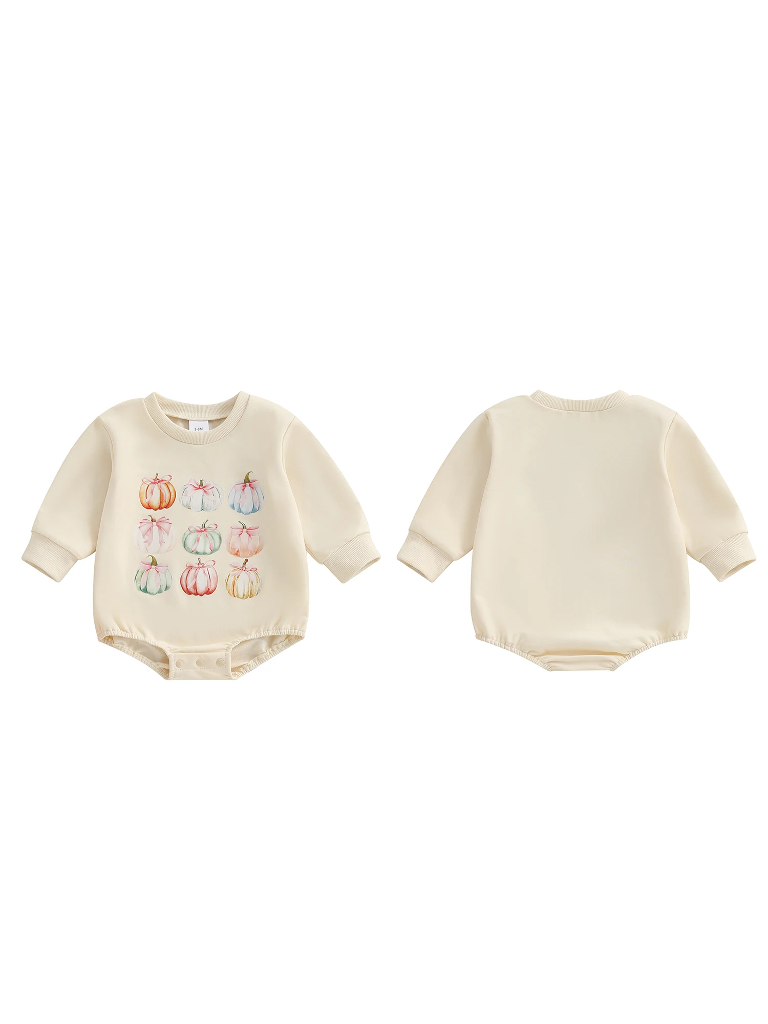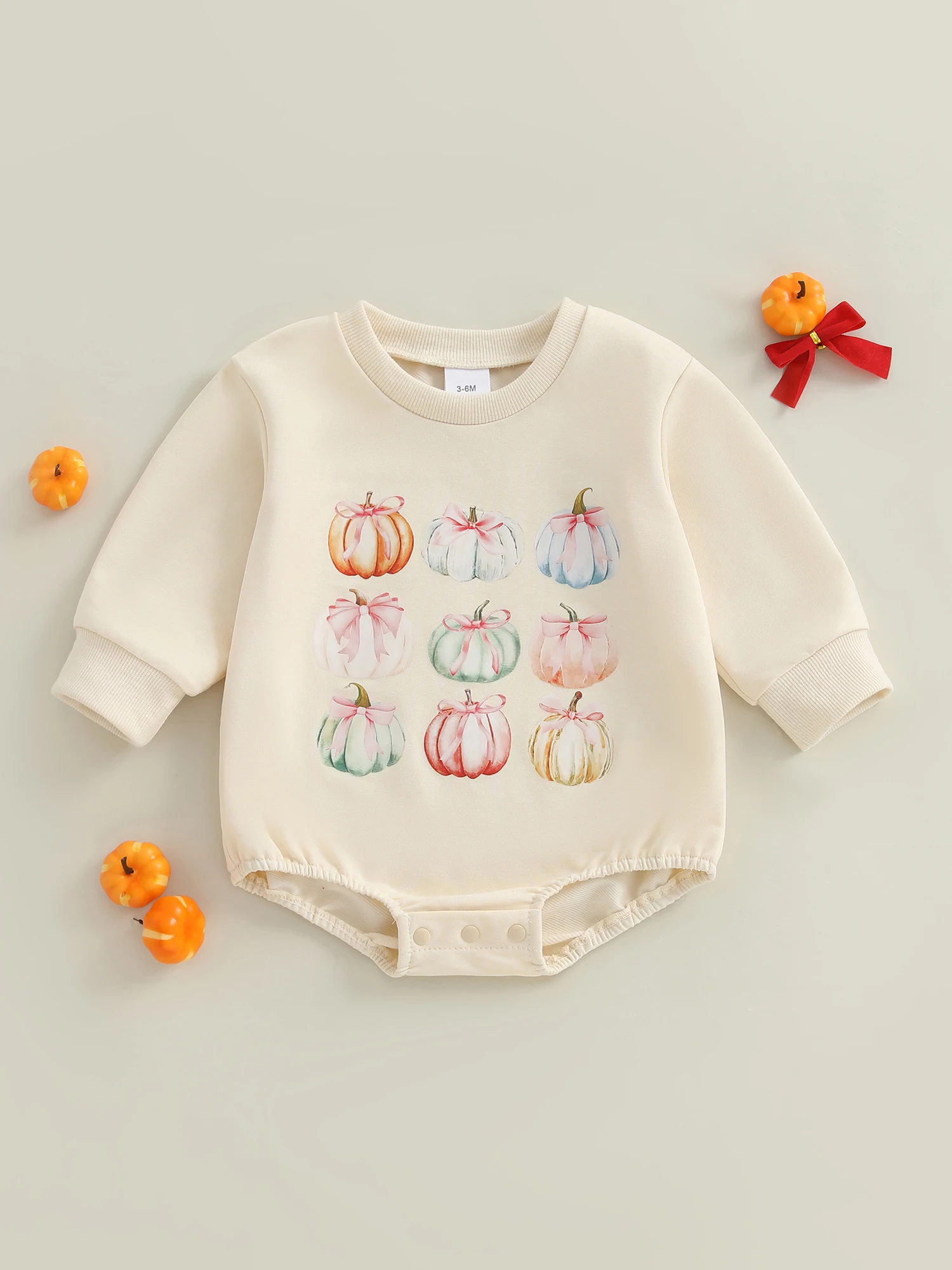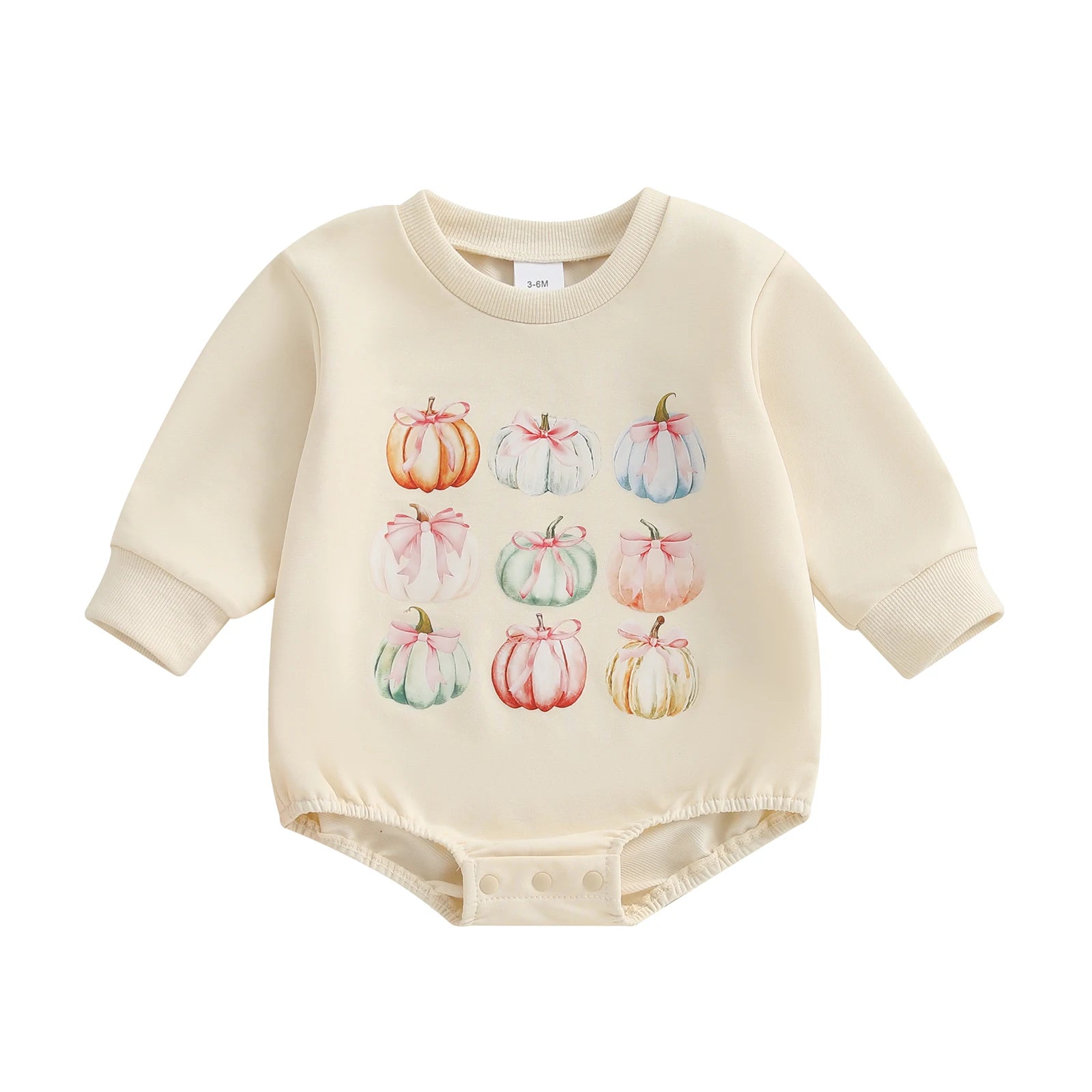 Baby Girls Romper, Long Sleeve Crew Neck Pumpkin Print Bodysuit Newborn Halloween CostumeA great present for your baby girl, make your little girl more lovely, she will get a lot of compliments.