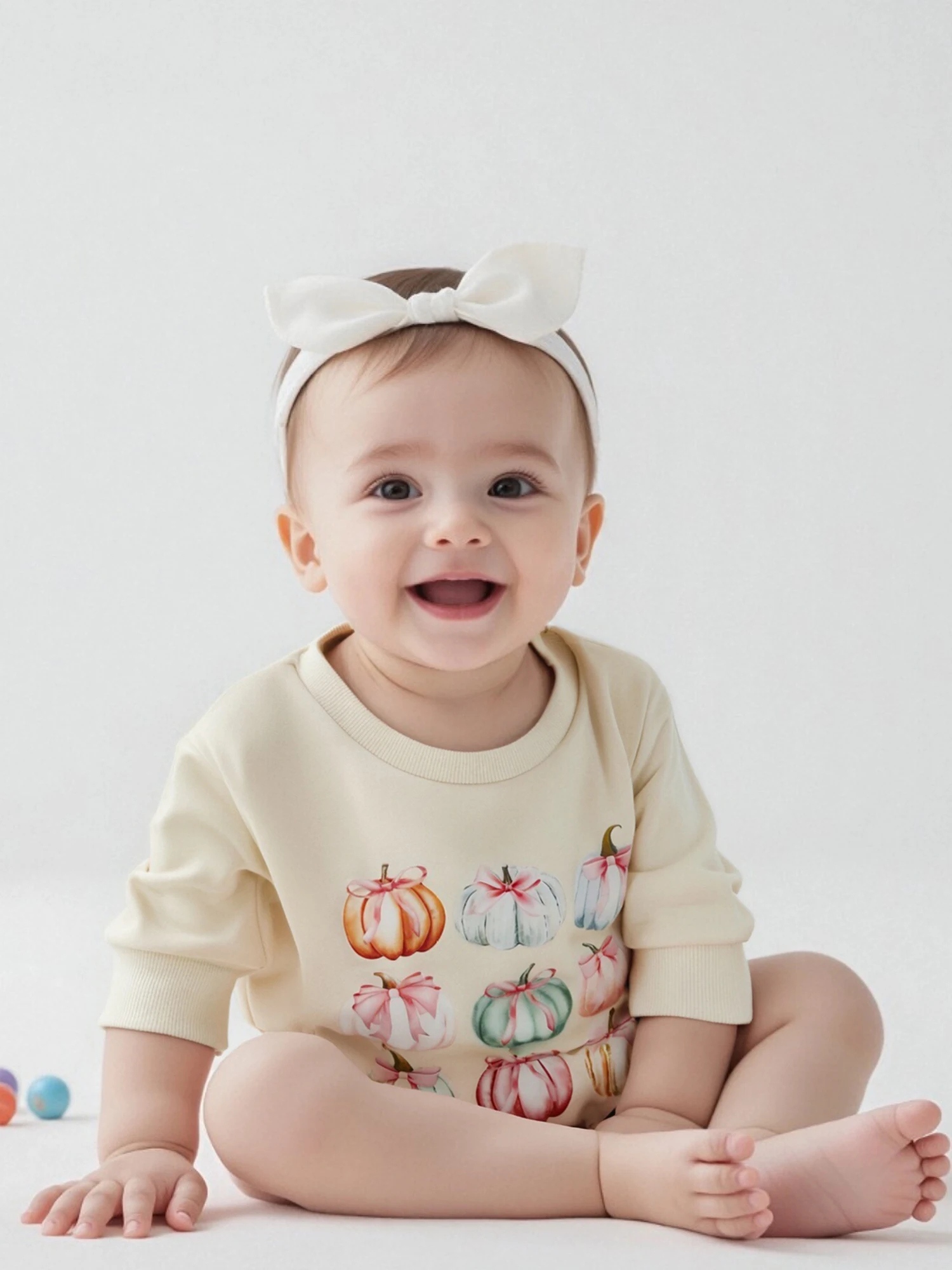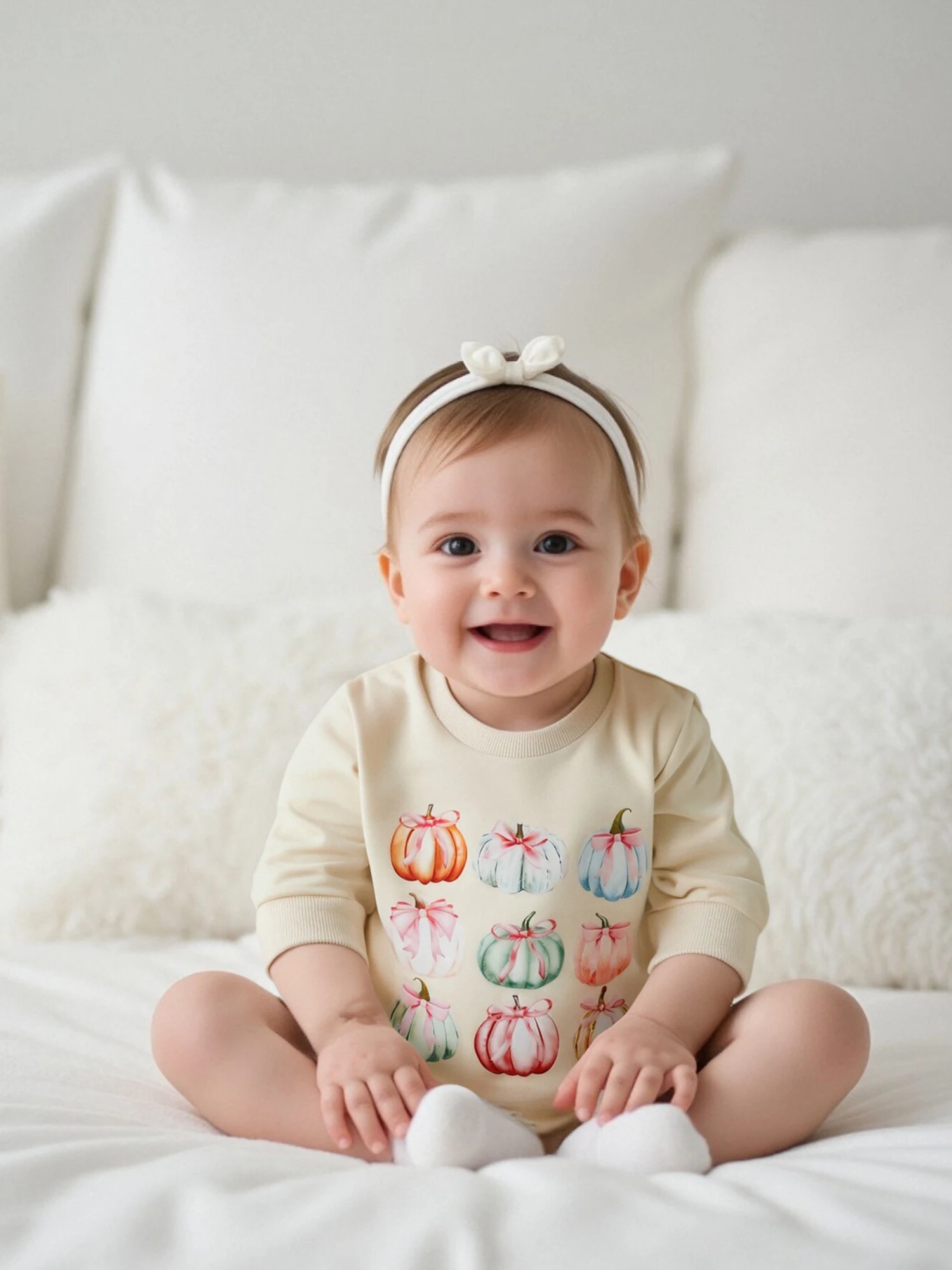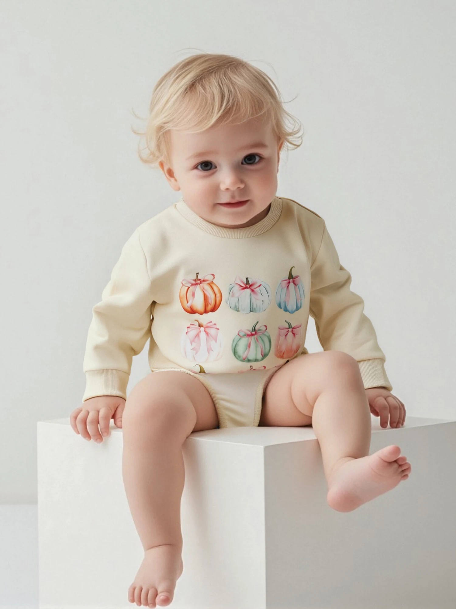 Baby Girls Romper, Long Sleeve Crew Neck Pumpkin Print Bodysuit Newborn Halloween CostumeA great present for your baby girl, make your little girl more lovely, she will get a lot of compliments.