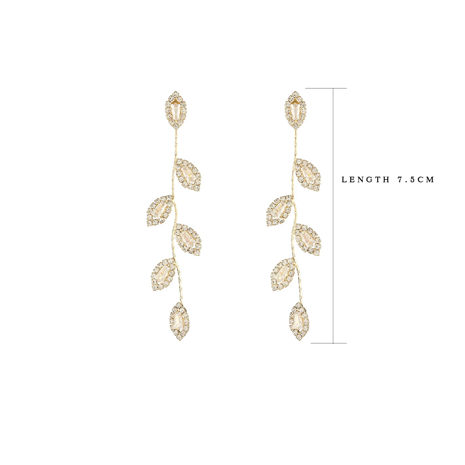 JUWANG Luxury Plated 14K Real Gold Leaves Earring Delicate Micro Inlaid Cubic Zircon CZ Stud Earrings Wedding Jewelry Pendant