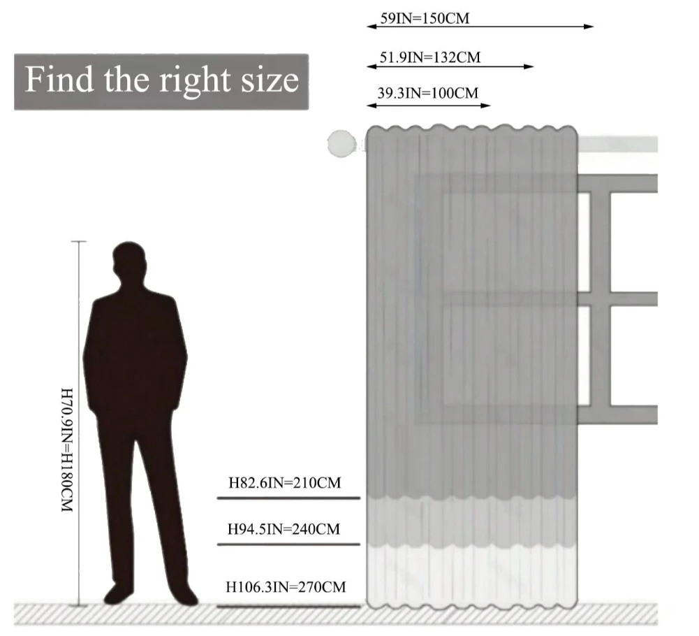 3.Please allow slight deviation (1-3cm) due to hemming.