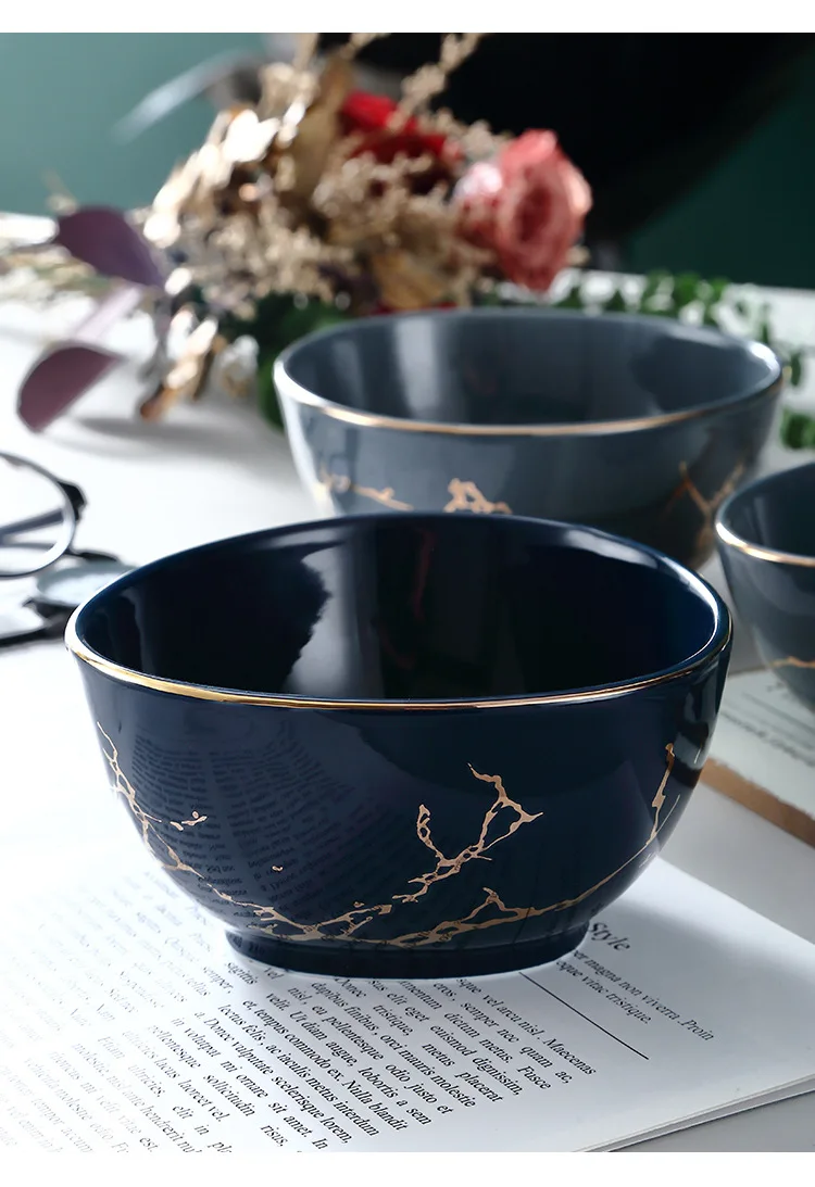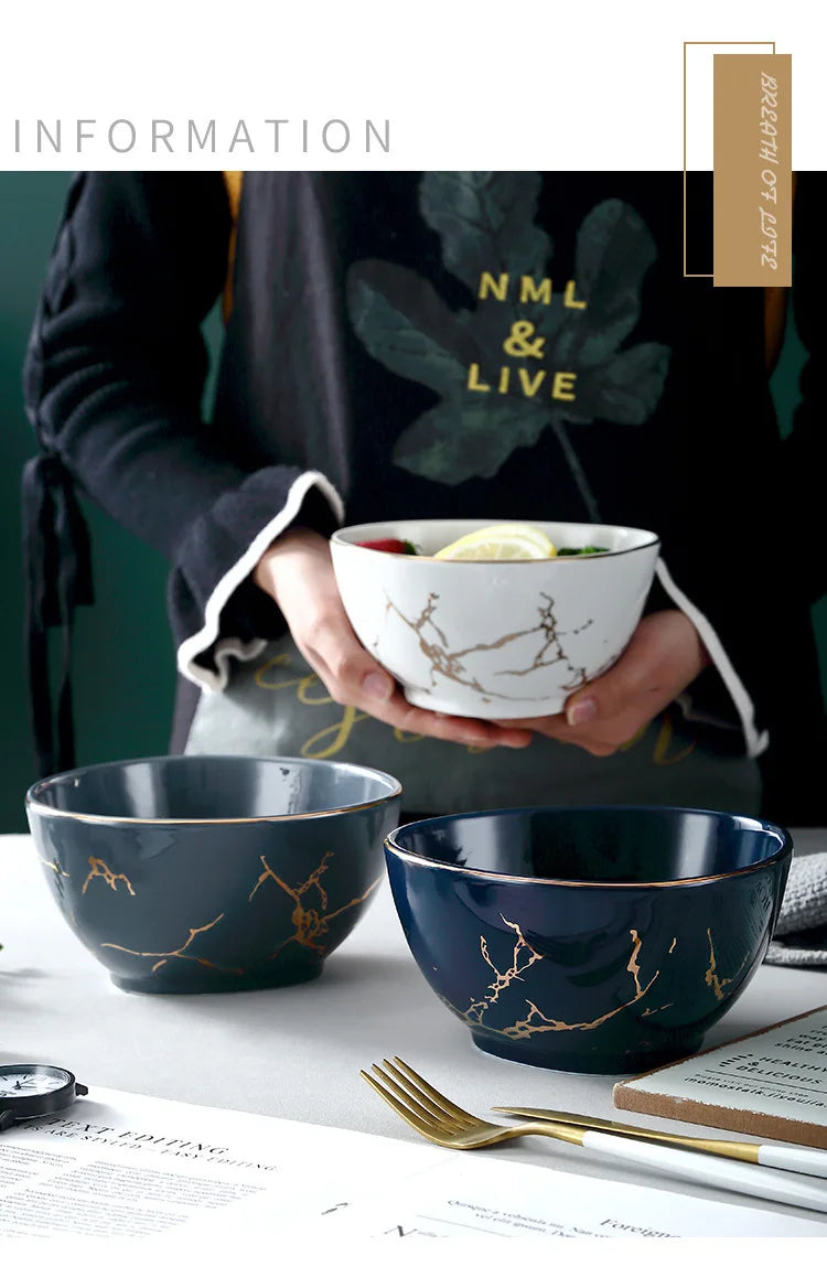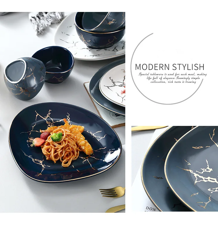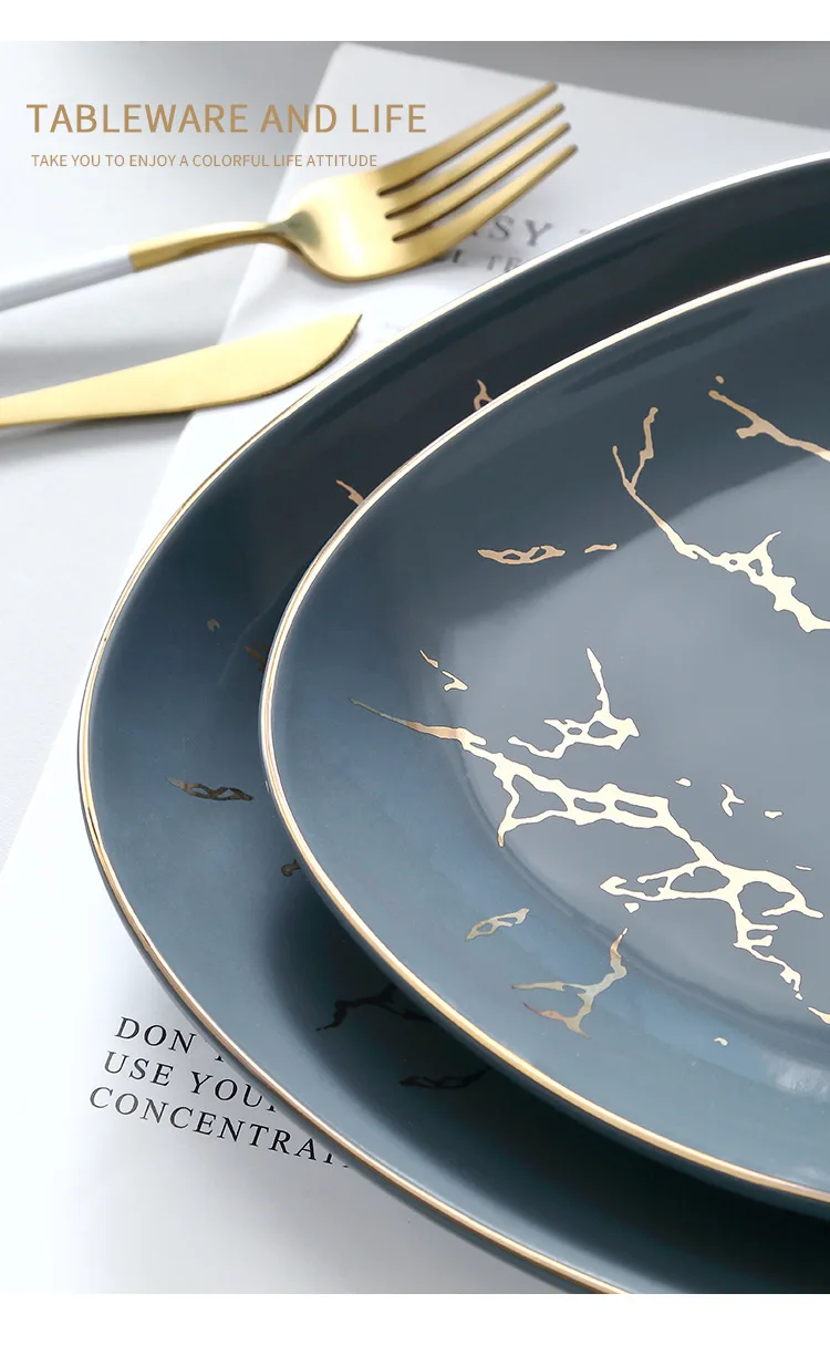 Nordic Dinner Plates Ins Gold Inlay Dinner Dish Marble Steak Plates Home Ceramic Food Dishes Tray Dinnerware Sets Drop Shipping