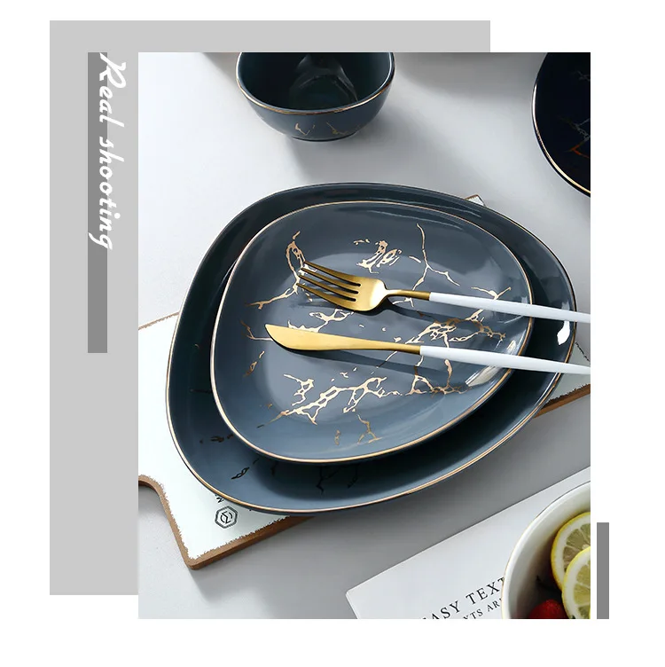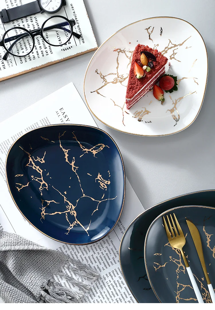 Nordic Dinner Irregular Plates Ins Gold Inlay Dinner Dish Marble Steak Plates Ceramic Dishes Tray Dinnerware Sets Drop Shipping