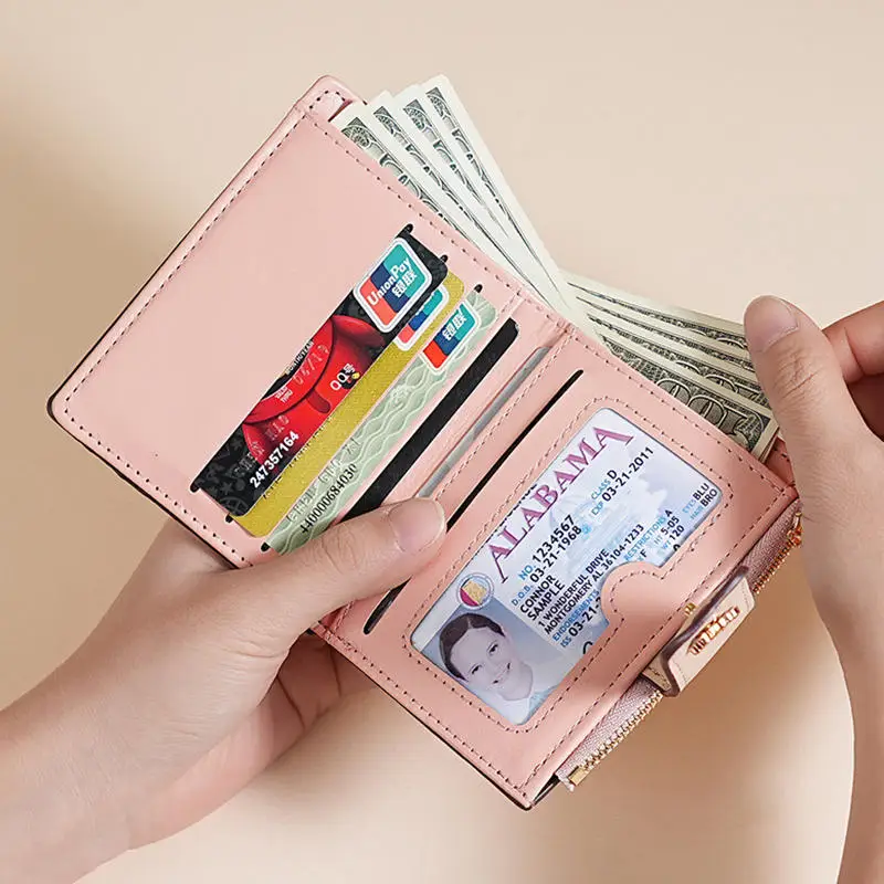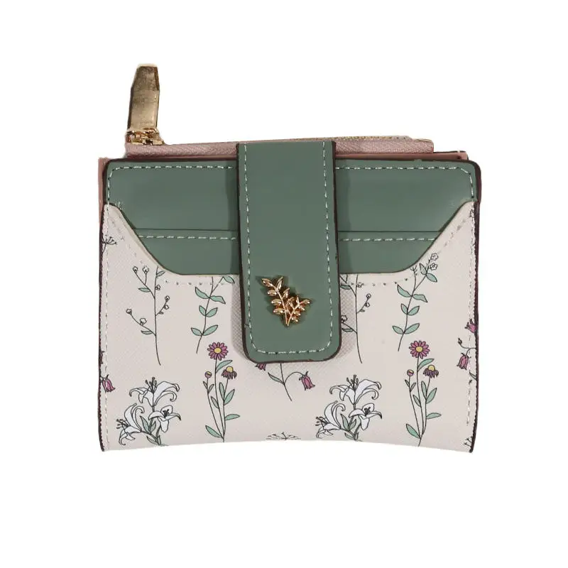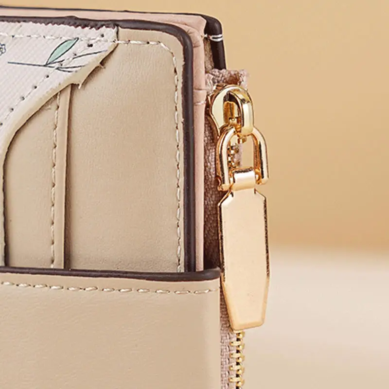 PU Leather Short Wallet Women Multi-Cards Zipper Coin Purse Hasp Small Flowers Card Bag Wallet Zipper Hasp For Girl