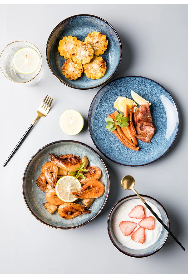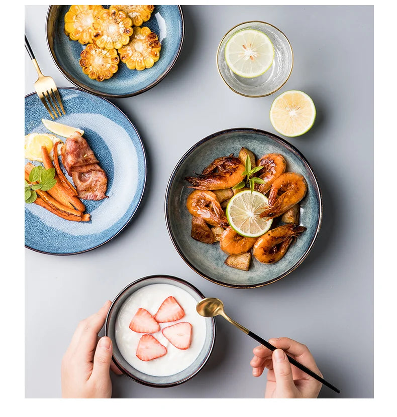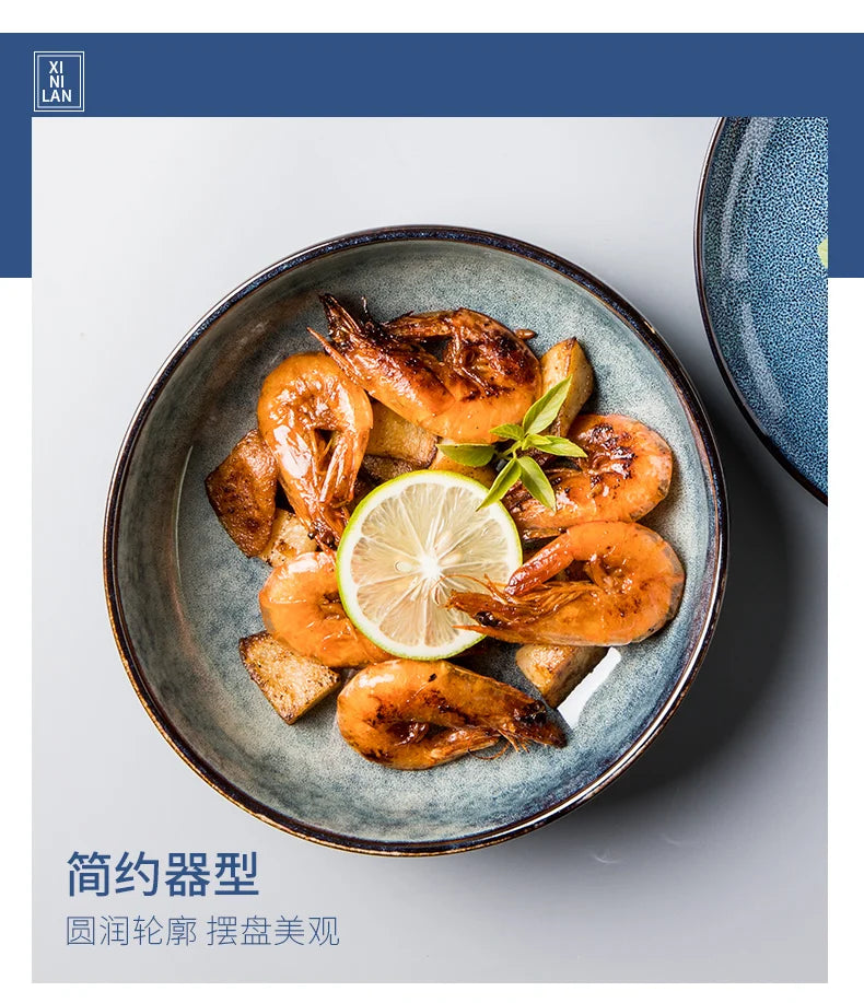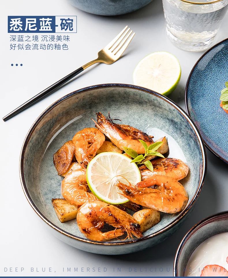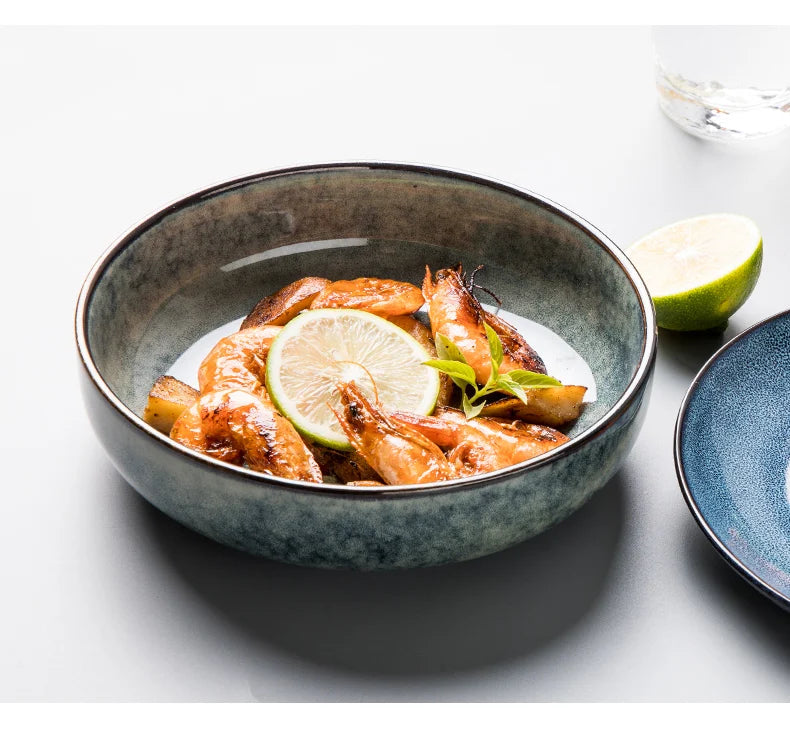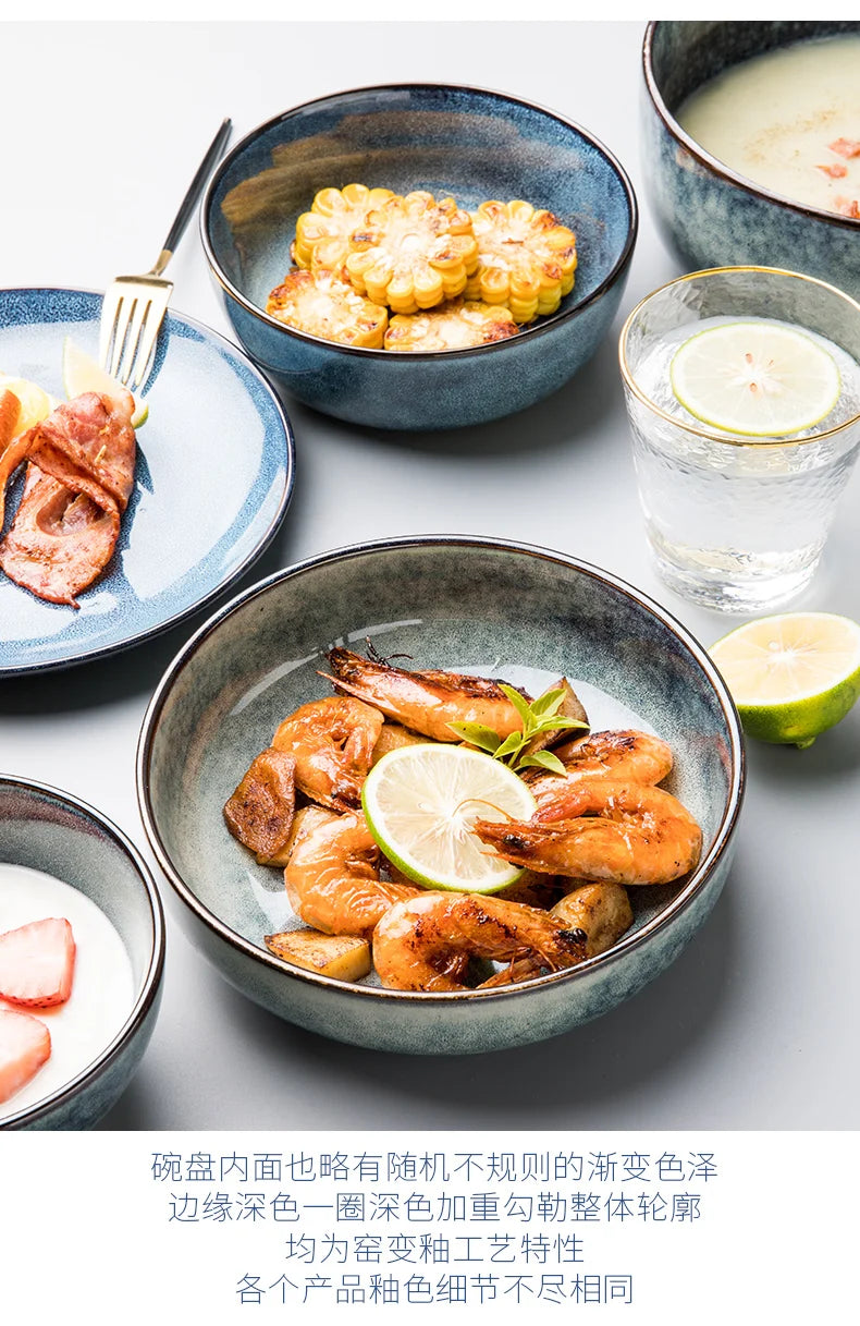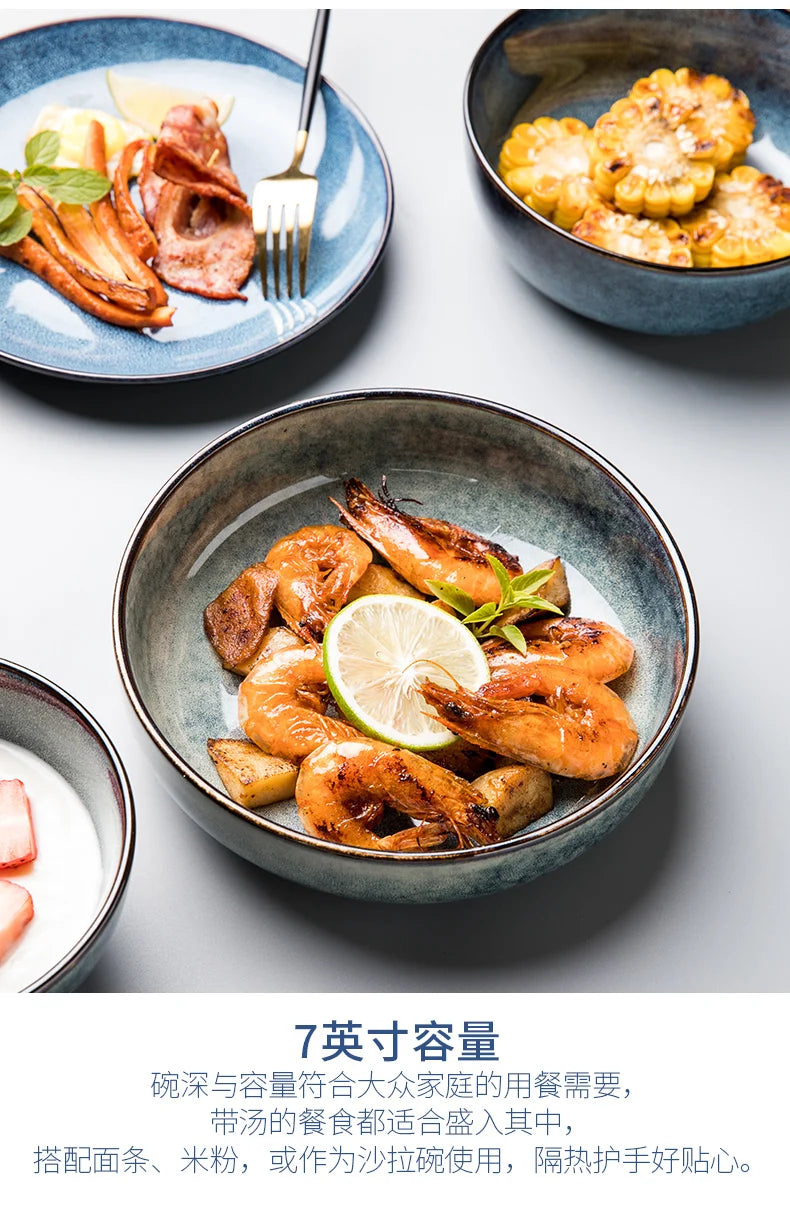 Retro Ceramic Bowl Salad Bowl Single Nordic Creative Dish Bowl Noodle Bowl Home Personalized Dish Deep Plate