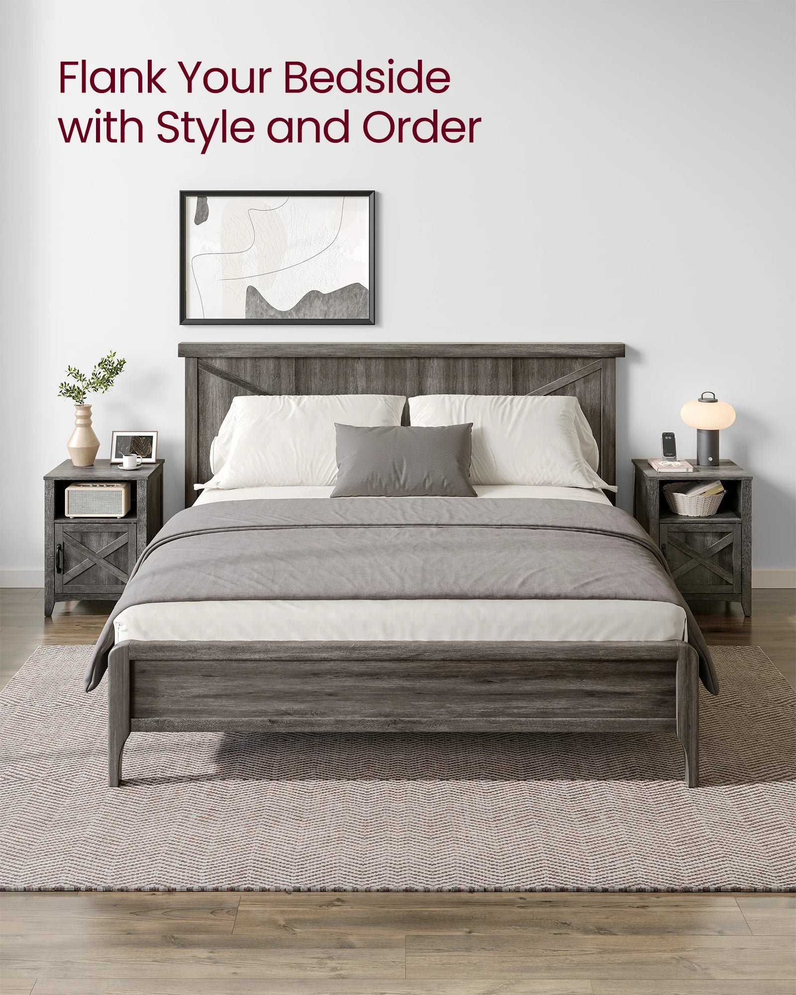 [Bring in Farmhouse Flair] These nightstands come from our LIRY Collection—a line of farmhouse-inspired storage furniture boasting elegant tall legs, versatile storage, and rustic charm to transform any room into an inviting, organized retreat