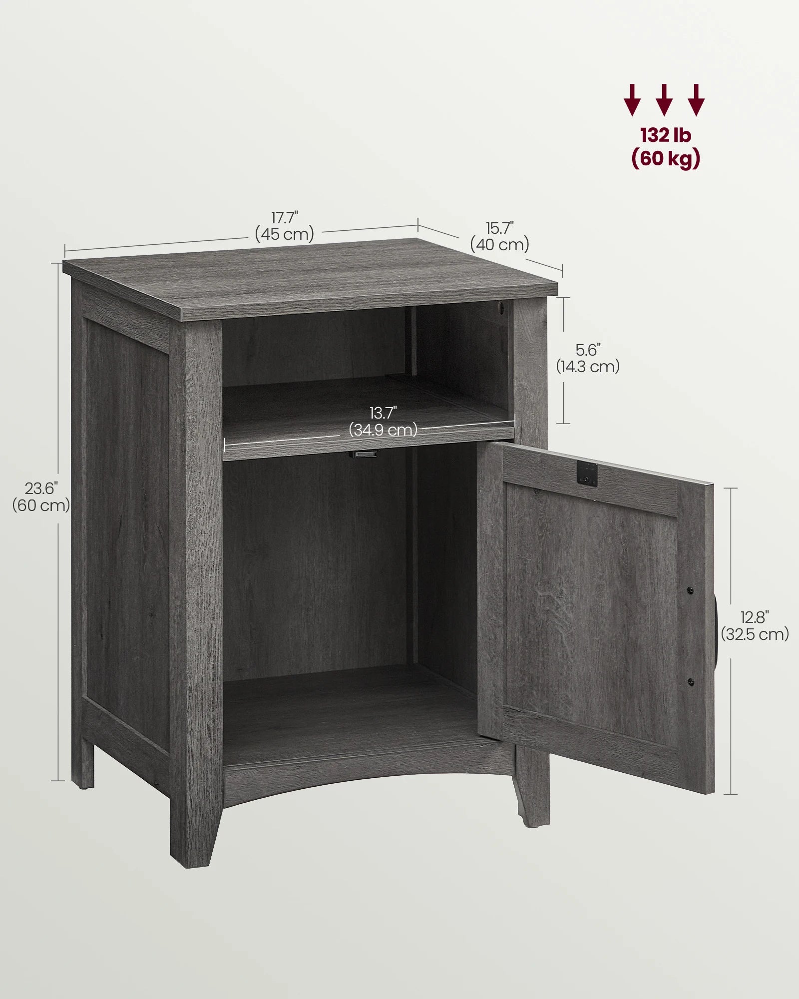 [Robust Construction] Constructed from premium MDF, this set of 2 nightstands stands the test of time. With an overall max. load capacity of up to 132 lb, they confidently hold your various bedside essentials