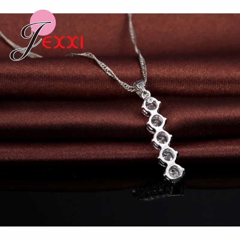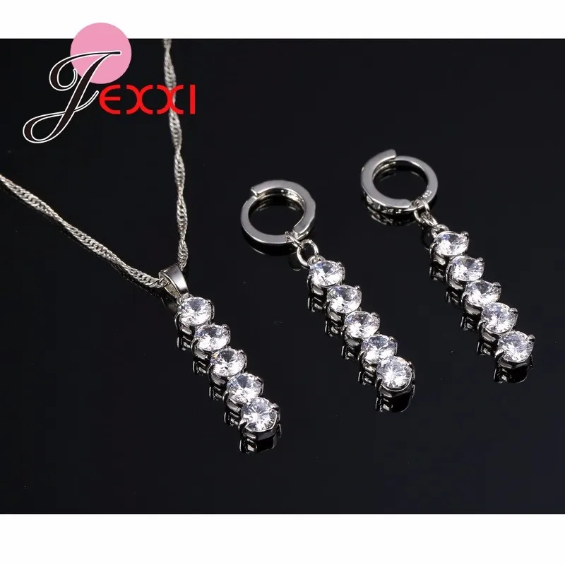 Wedding Women Bijoux Classic Genuine 925 Sterling Silver Cubic Zircon Jewelry Sets Shiny Crystal Necklace Pendant Drop Earrings