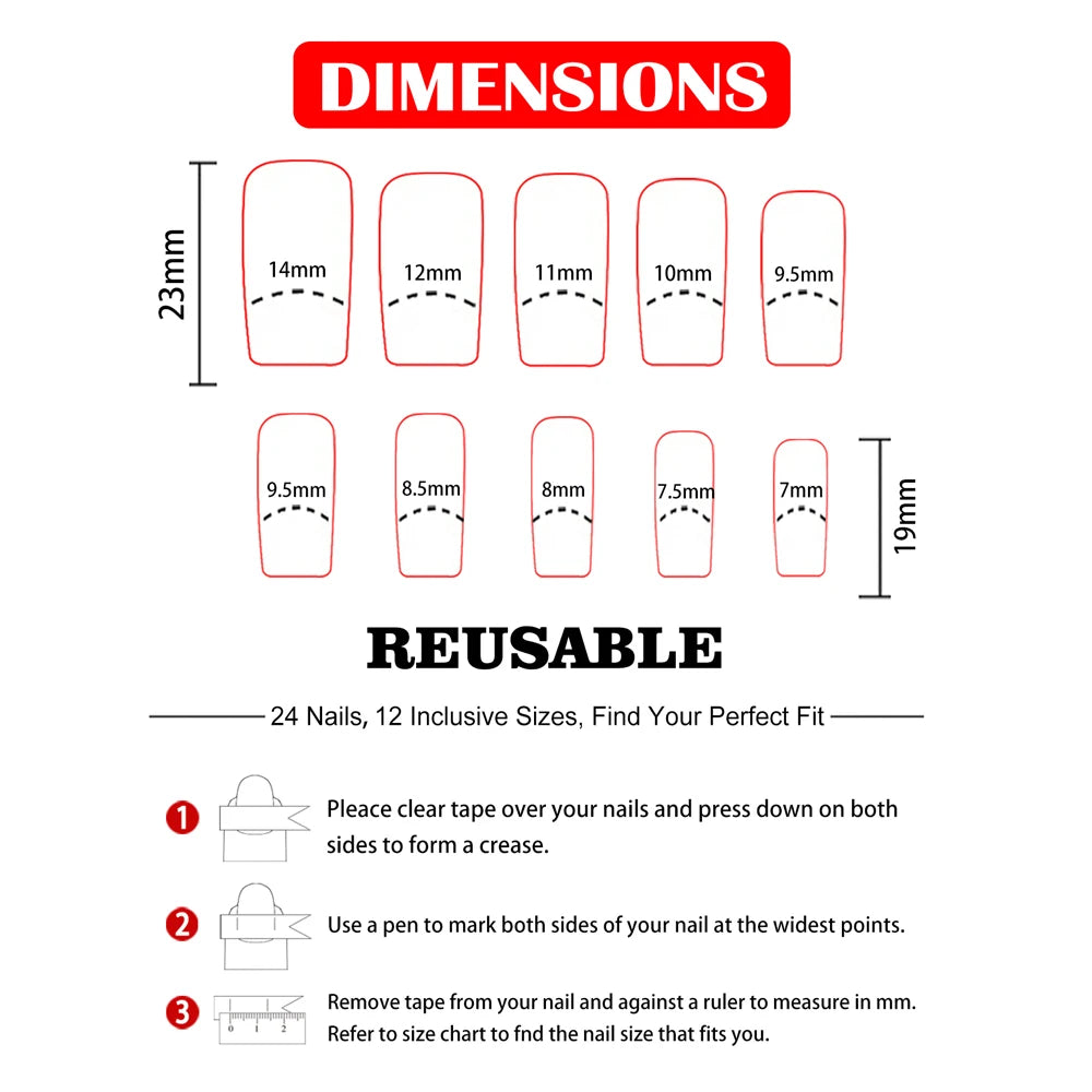 Wide Applications: Press on nails are perfect for special occasions like prom, party, birthday, wedding, dating. Also suitable for holidays like Valentine’s Day, Christmas etc. A great gift idea for girlfriends, sisters, wife, family, friends, etc