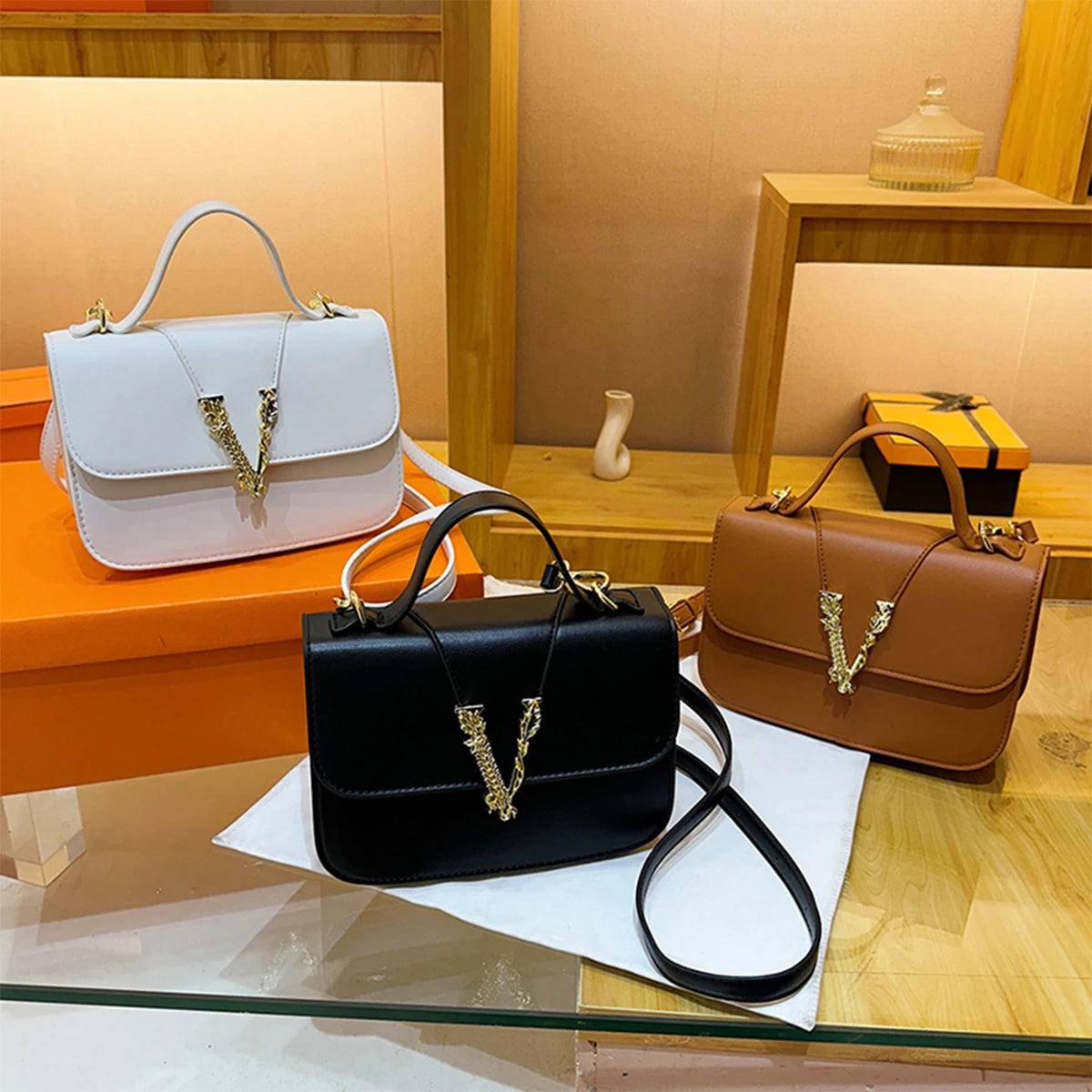 Women's Fashion Crossbody Bag PU V-Logo Flap Purse Large Capacity Magnetic Closure Adjustable Strap Waterproof for Daily Use