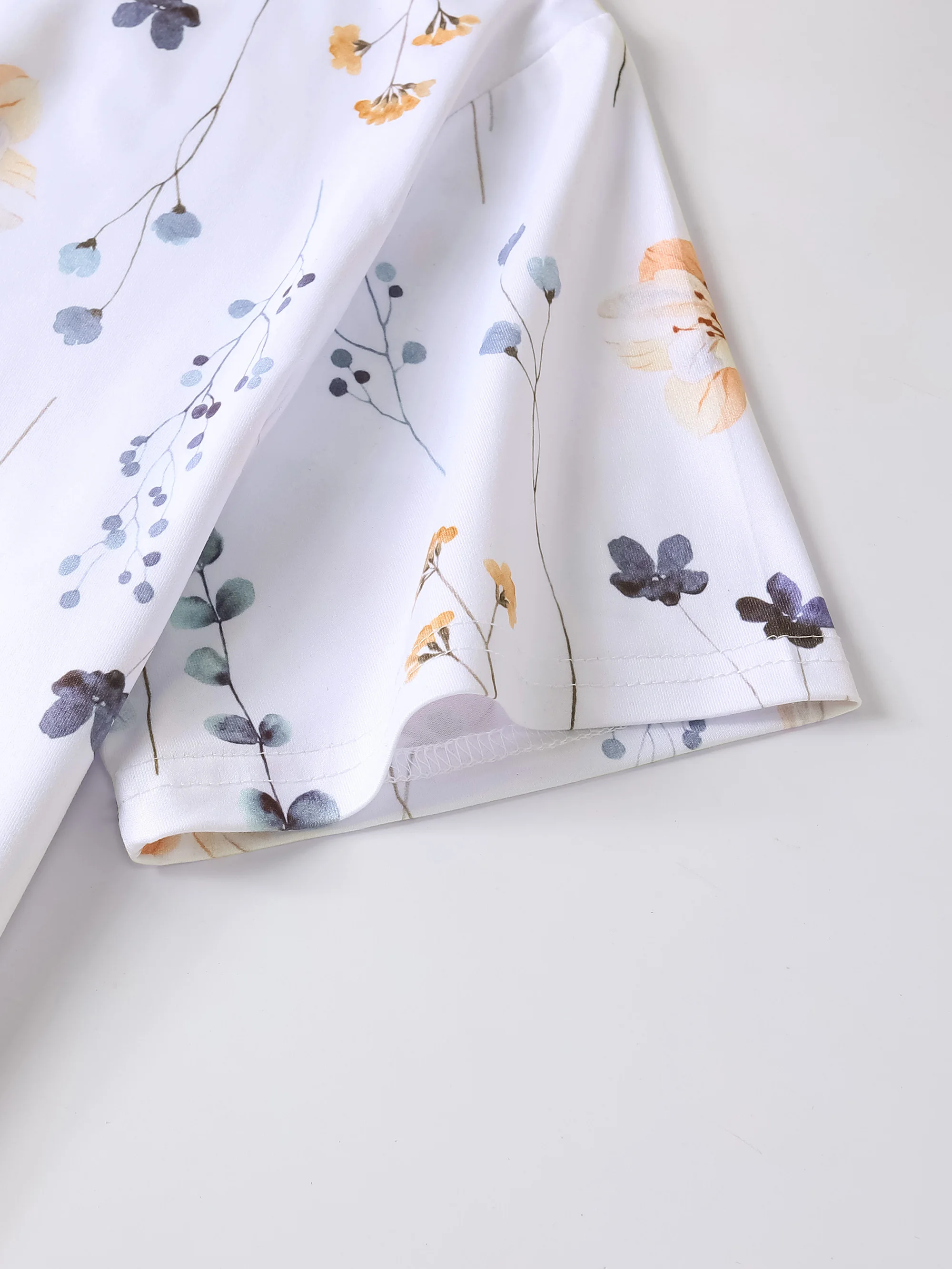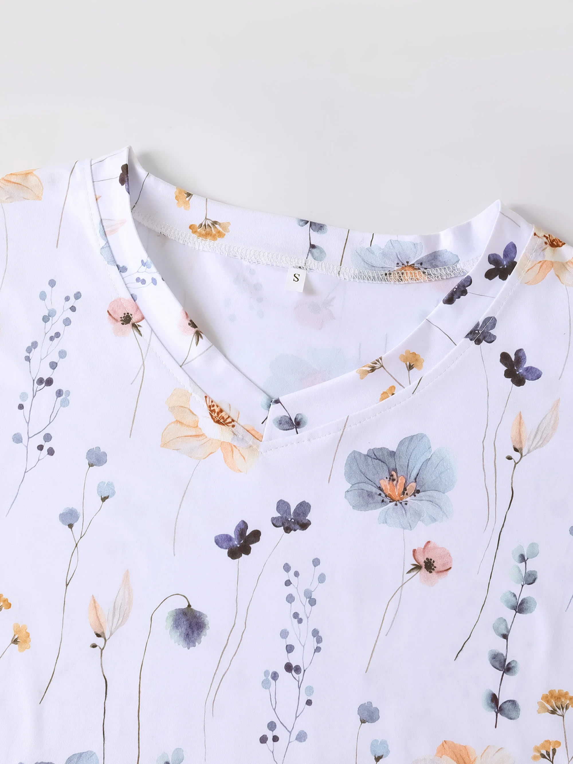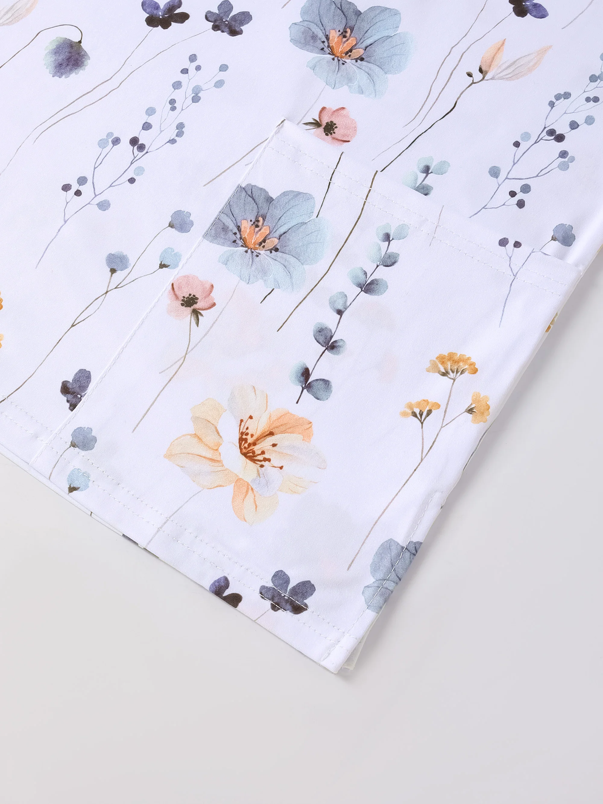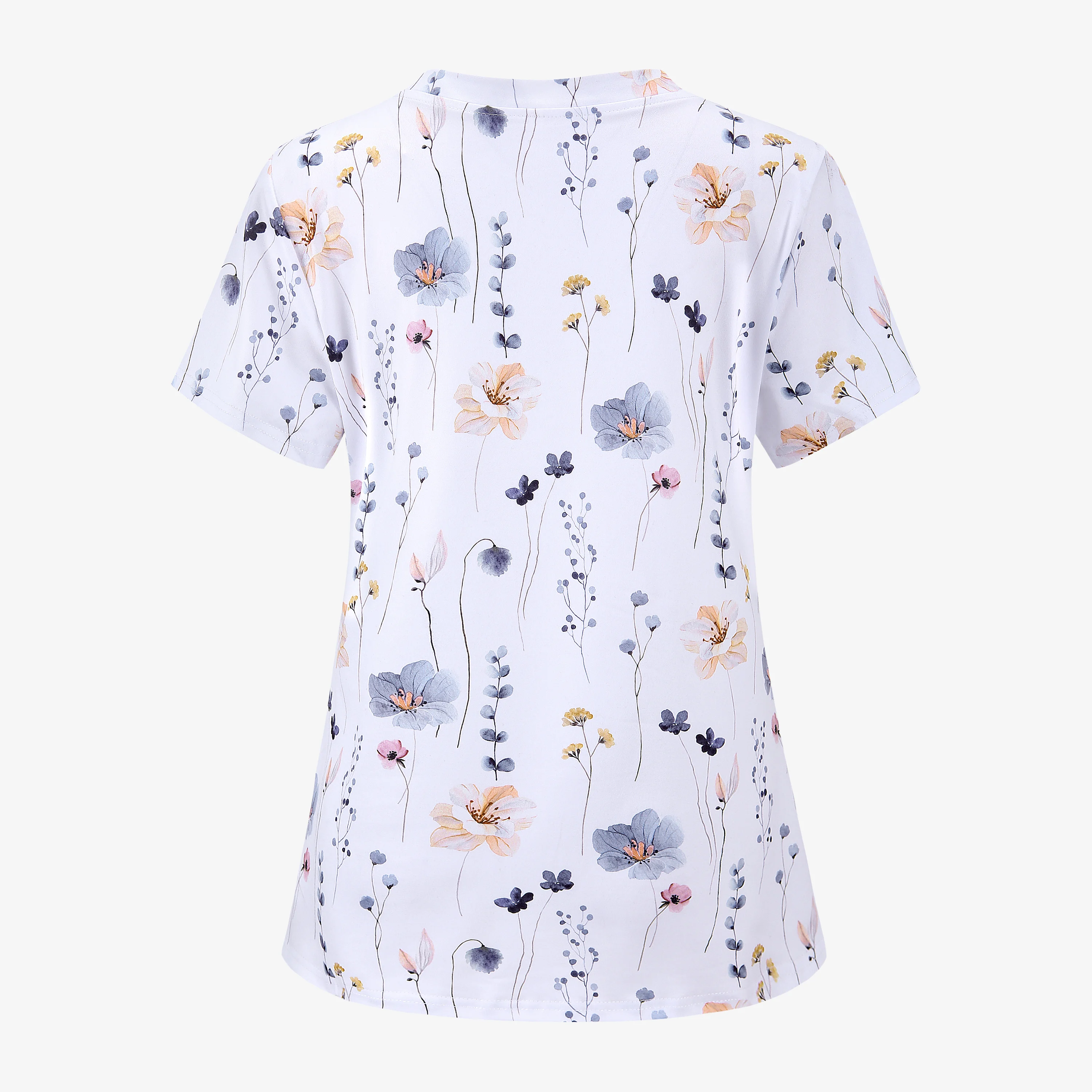 XUANSHOW Summer Women Uniform Flowers Printed Work Wear Pocket Front Short Sleeve V Neck Clothes